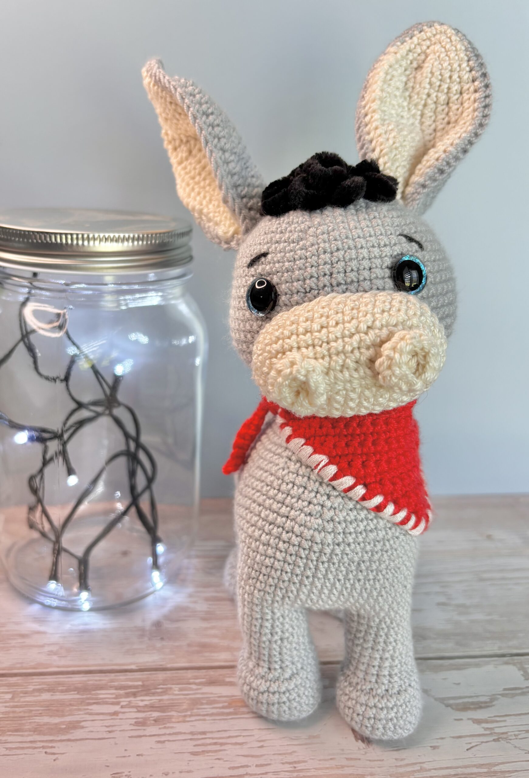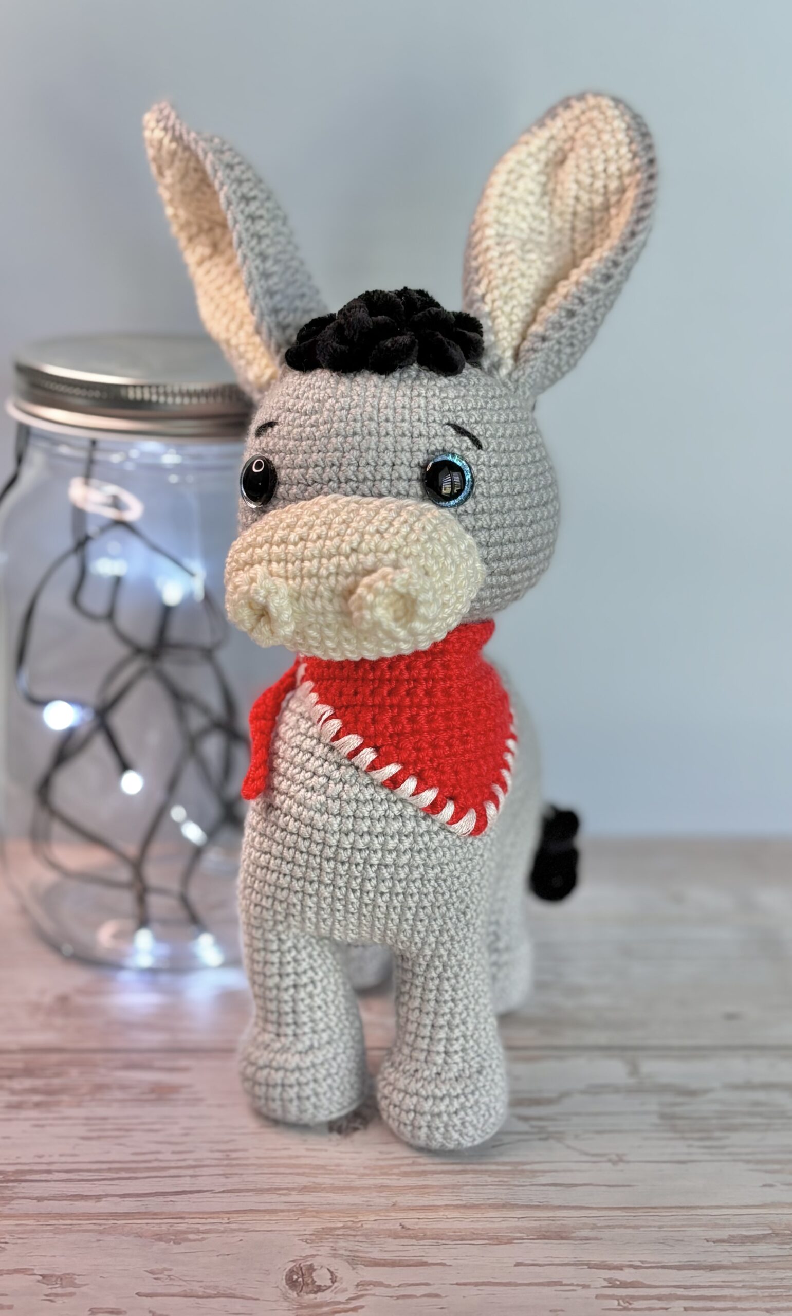 Create your own adorable donkey with this easy-to-follow crochet pattern! This digital PDF includes step-by-step instructions and photos to help you make a sweet amigurumi donkey complete with a charming bandana. Perfect for gifts, nursery decor, farm animal collections, or market stalls.
